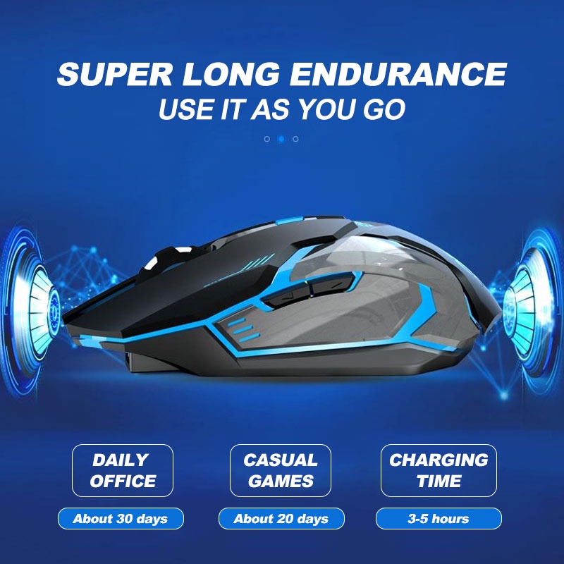 Mouse Gaming Wireless 24ghz 1600 Dpi Threespeed Silent Click Rechargeable Laptop Pc Rgb Led