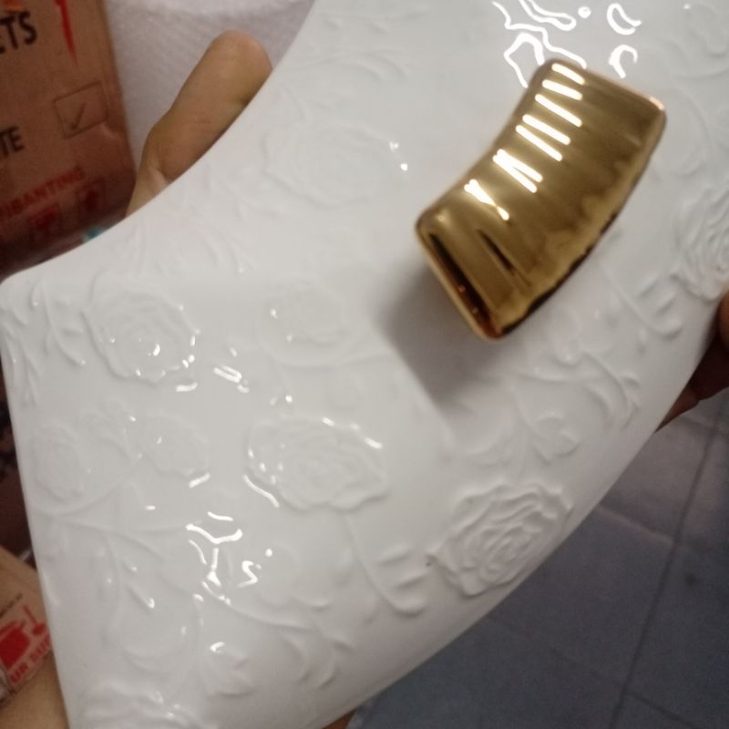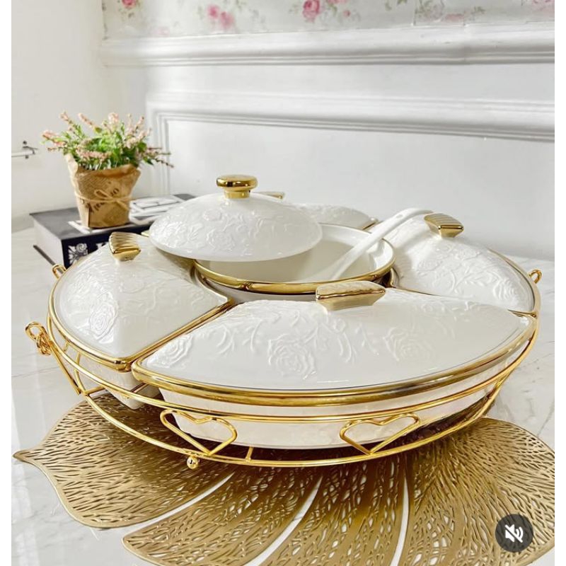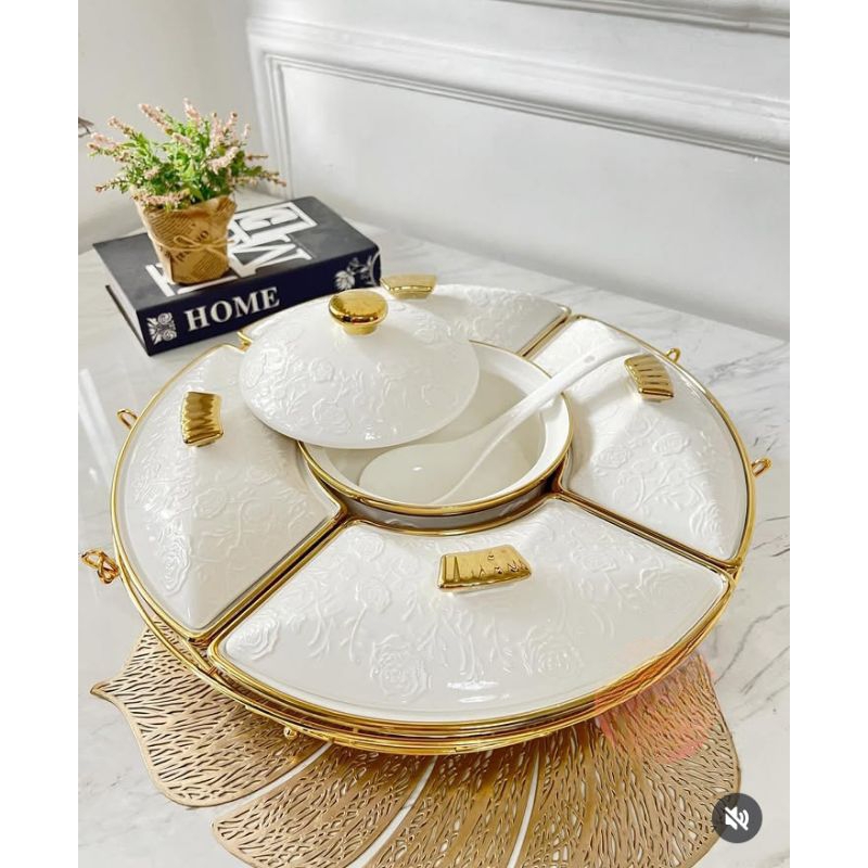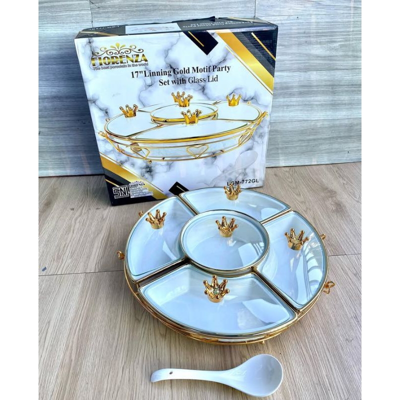 Prasmanan Wadah Saji Keramik Fiorenza LGM772 Motif Bunga Timbul 17inchi