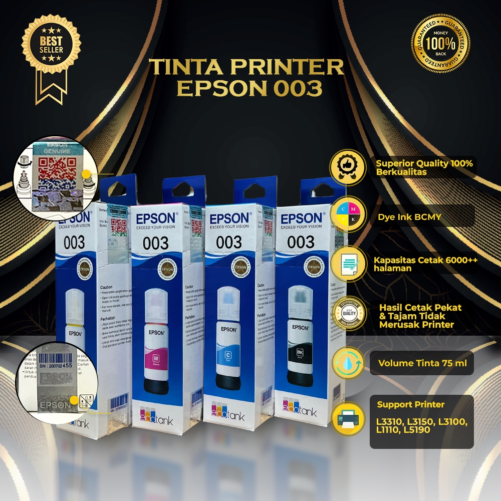Tinta printer 003 Original Series L3110 L3150 L3100 L1110 L3101 L5190