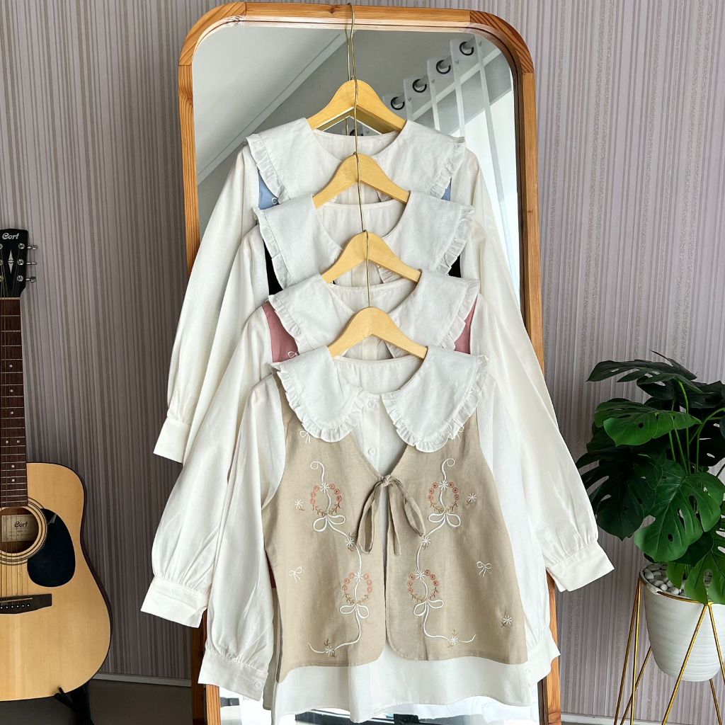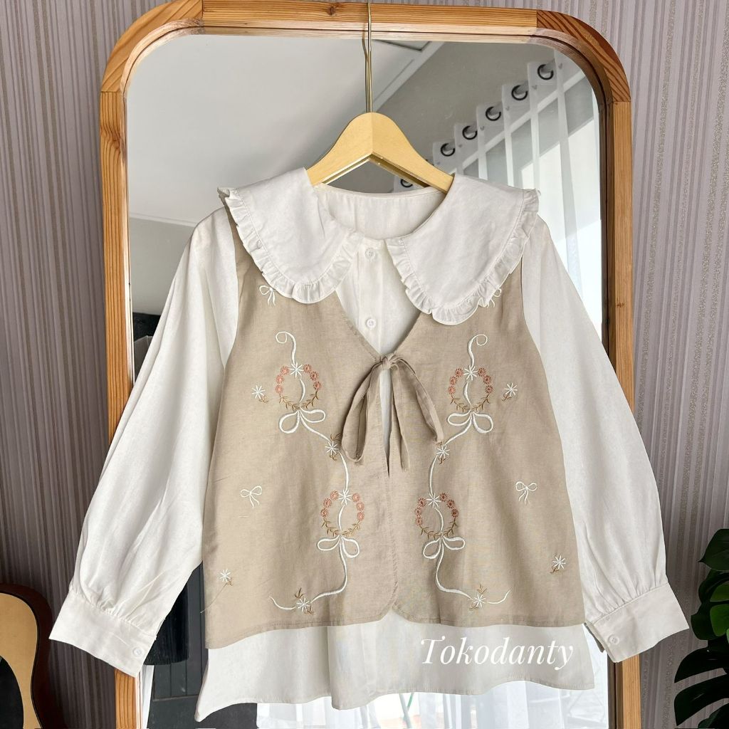 Kamari shirt Atasan Kemeja Wanita Lengan Panjang Katun Linen Bordir
