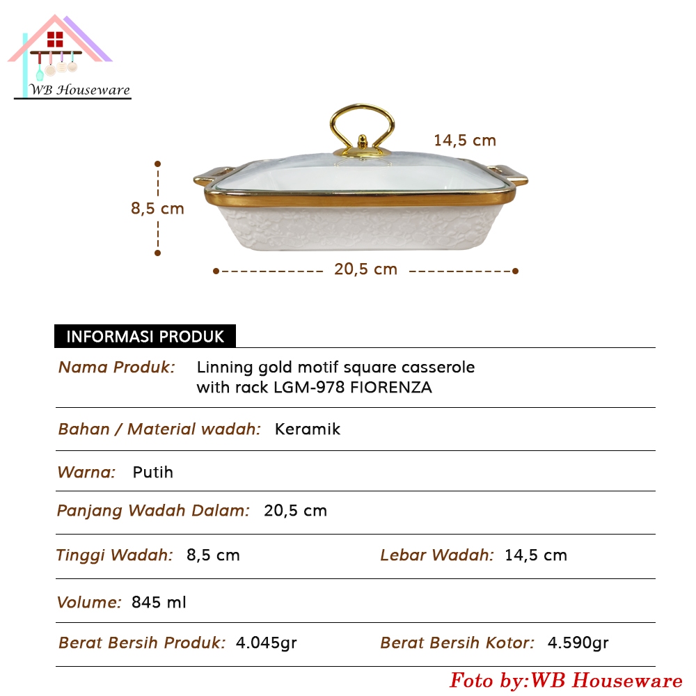 FIORENZA prasmanan set segi isi 3 + tutup + rak motif linning G0.LD series keramik / premium casserole set with rack / food warmer type LGM-978