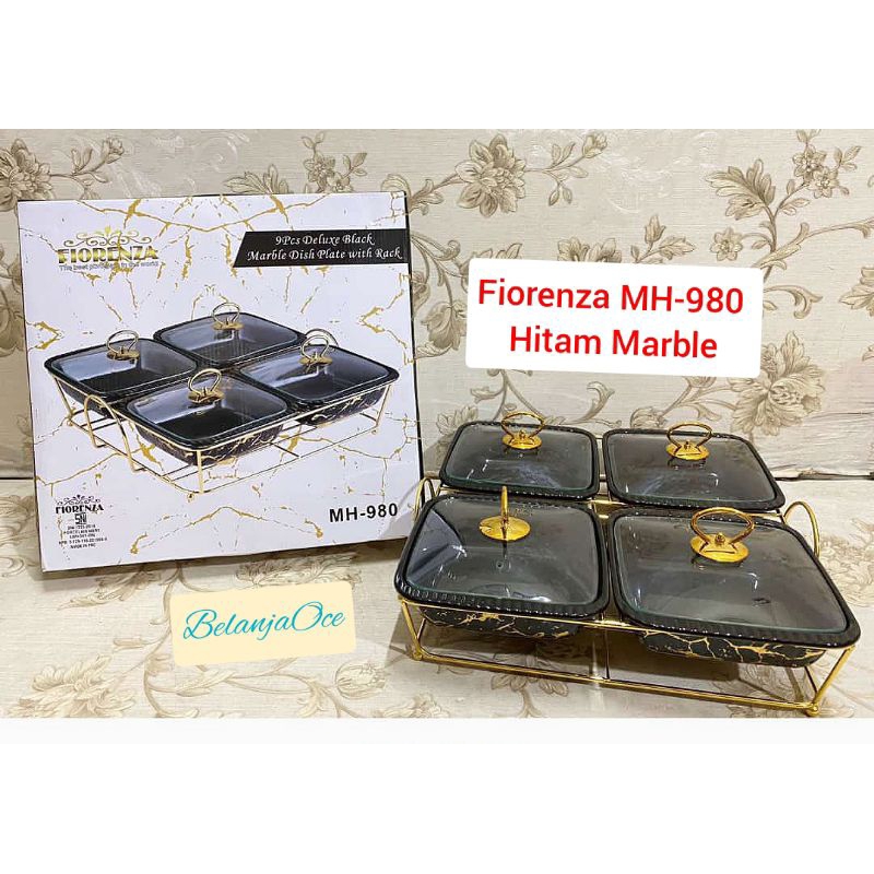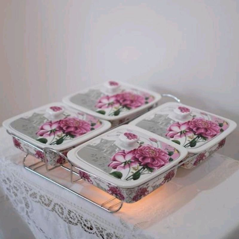 [Packing Kayu] Prasmanan Segi Keramik Fiorenza Set 4 Pcs / Wadah Saji Lauk