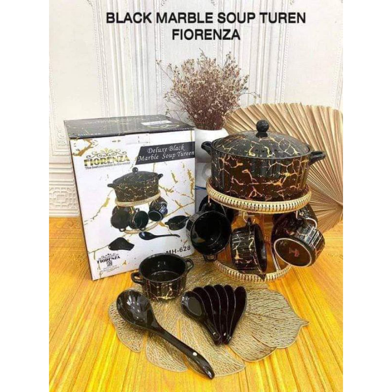 (Packing Kayu) Wadah Saji Sop Fiorenza Keramik Marbel Set Rak/ Soup Tureen. (MH-628, MP628, MT-628)