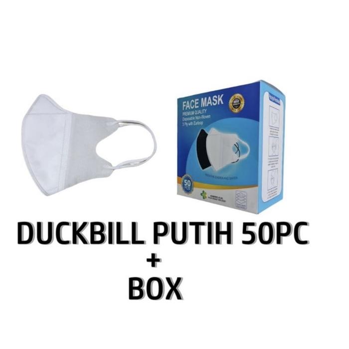 Masker Duckbill Face Mask Earloop Tali Kuping 3ply isi 50pcs - DB Face Mask Putih