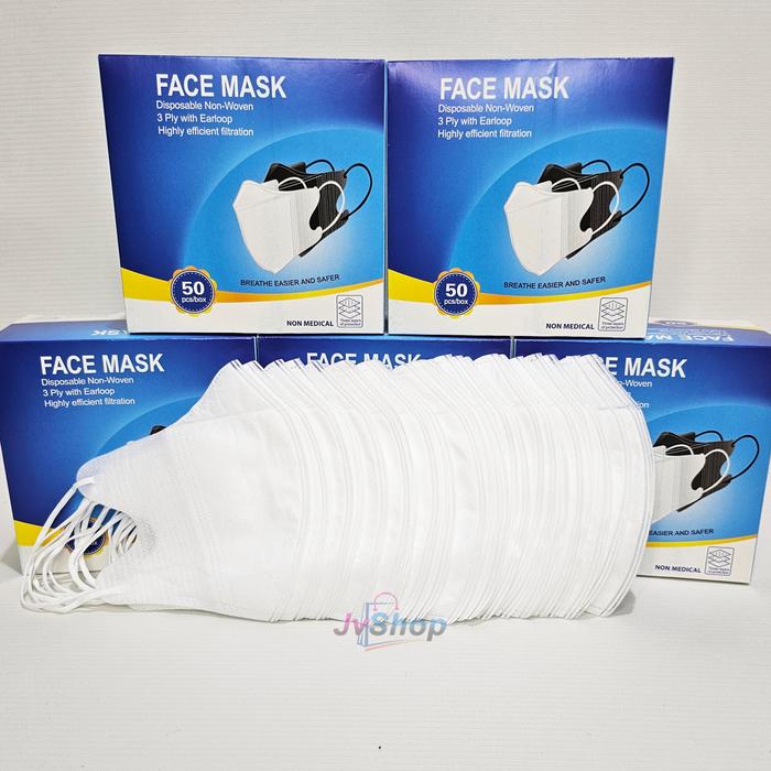 Masker Duckbill Fac3m45k Isi 50pcs 1Box - FM Putih 50pcs