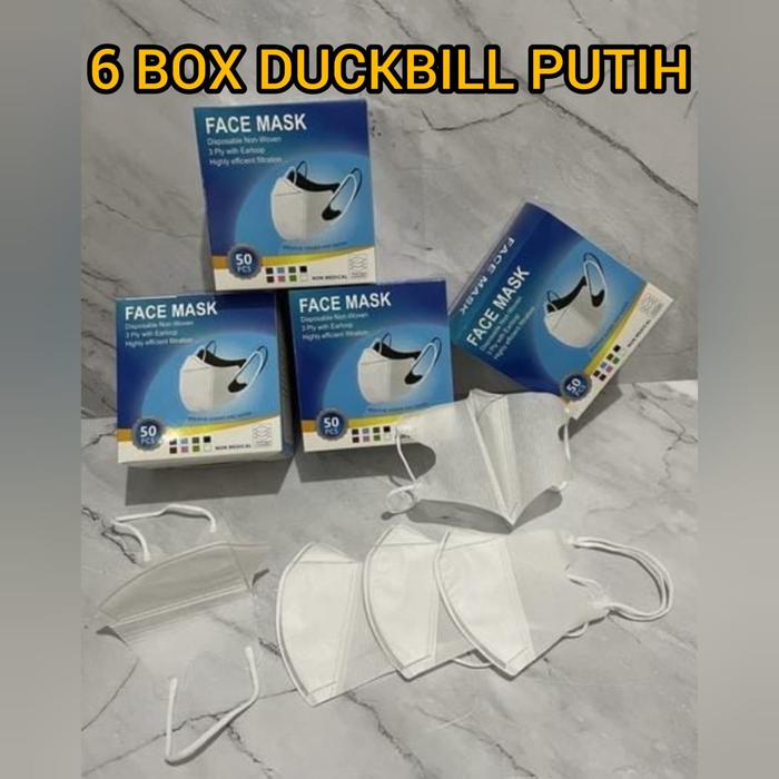 PAKET 6 BOX masker DUCKBILL DEWASA FAC3m45K / DUCKBIL GARIS / MURAH masker sekali - 6 BOX PUTIH