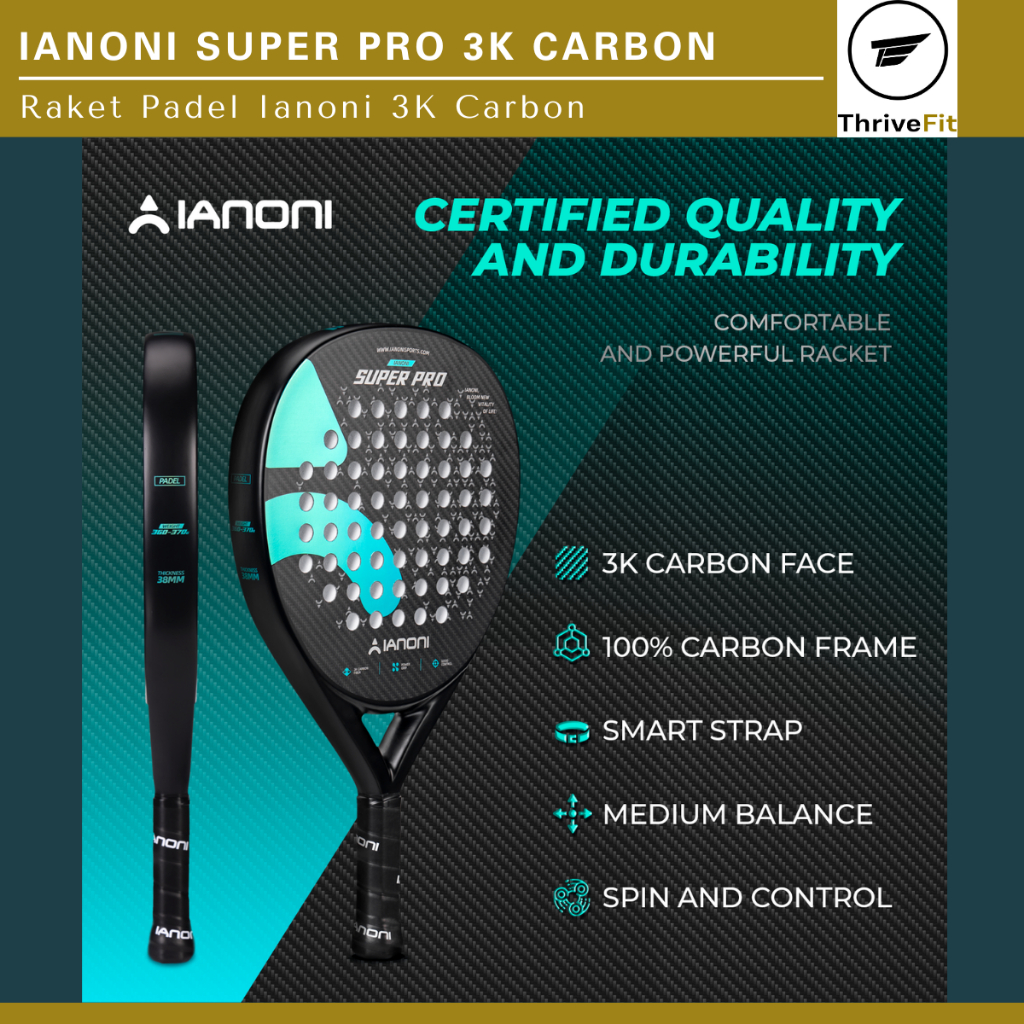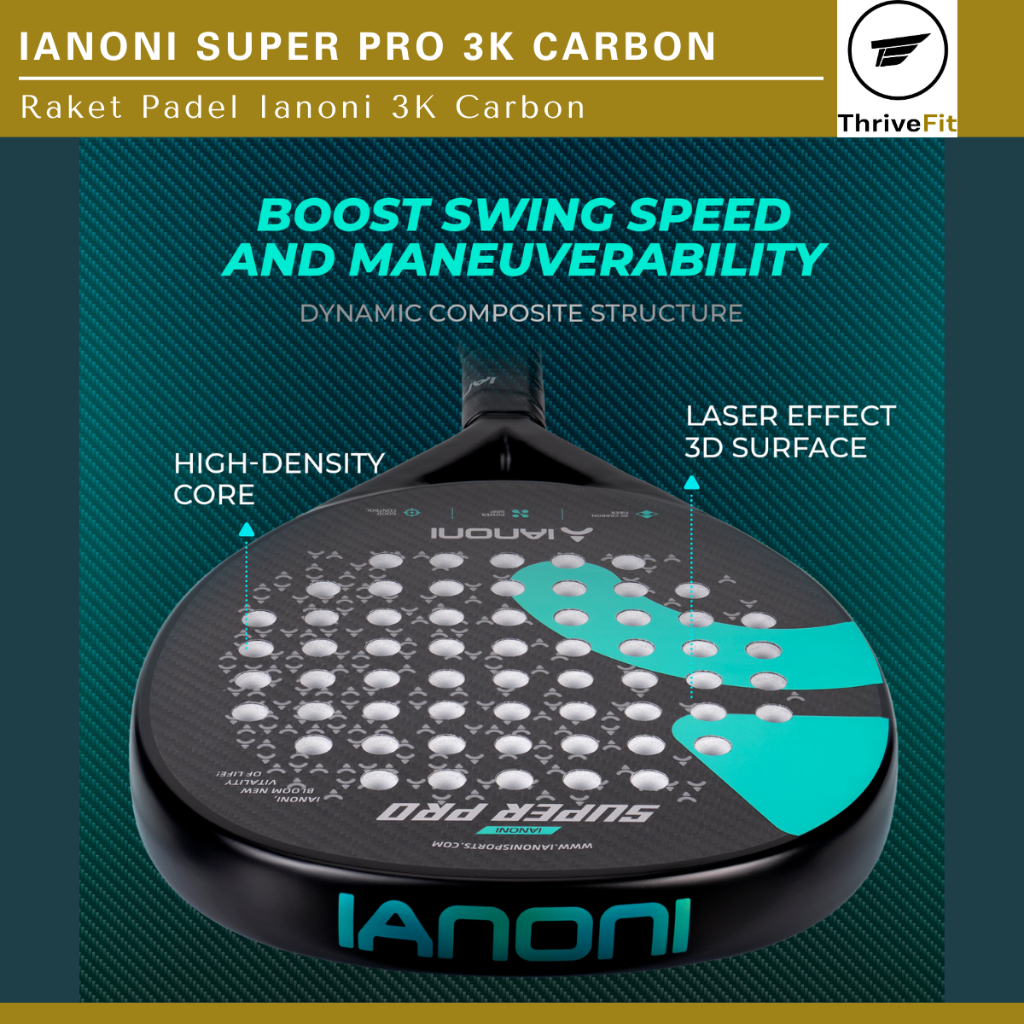 IANONI Super Pro 3K Carbon 3D Surface Padel Racket / Raket Padel 3K Carbon 3D Surface