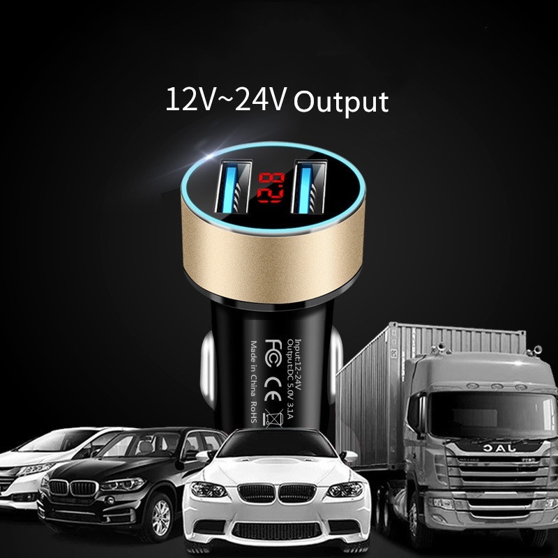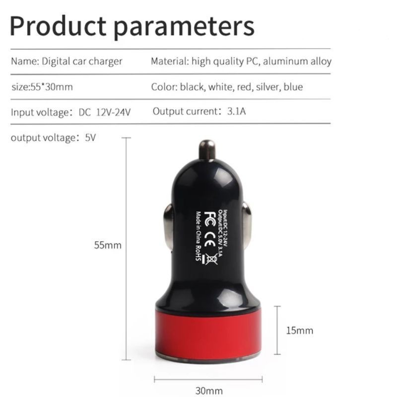 Charger Mobil Telas Adaptor 2Port Usb Fast Charging 3.1A 12V24V Motor