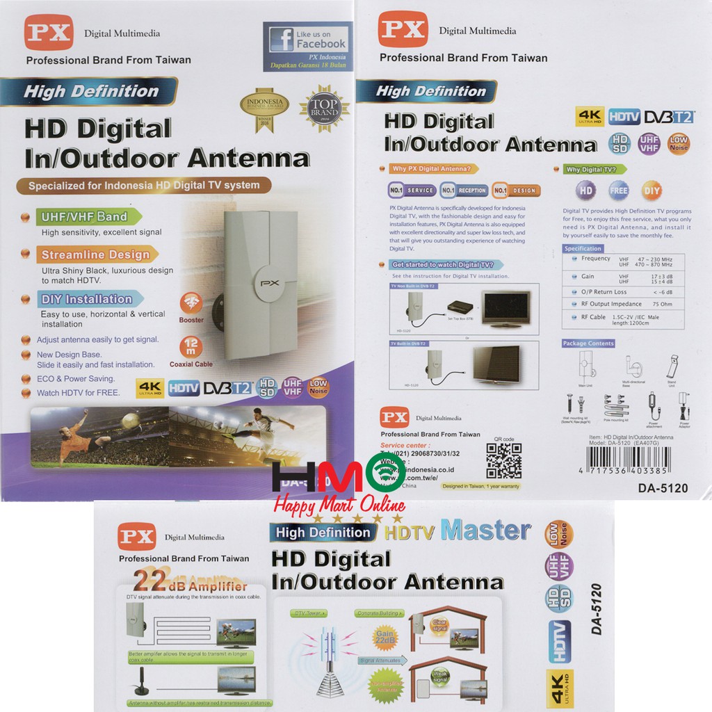 Antena Tv Digital Px Da5120 Indoor Outdoor Resolusi Tinggi Dengan Kabel Hd