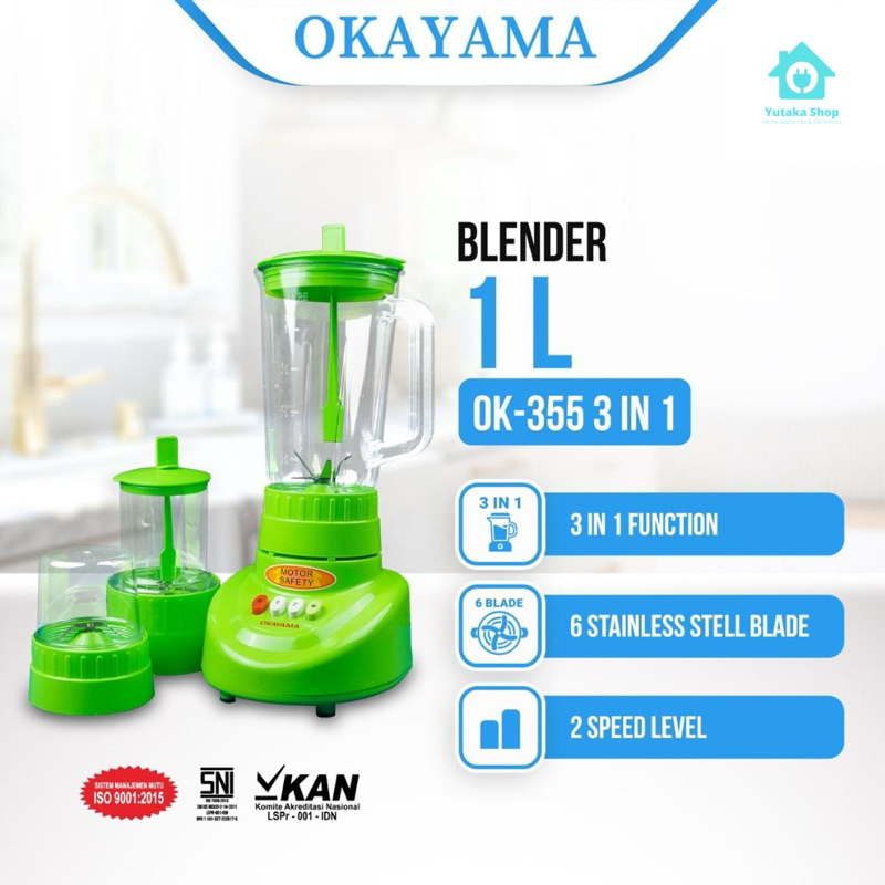 Blender Okayama 3 In 1 Ok-355 1 Liter Kecepatan Variabel Pembuat Jus Buah
