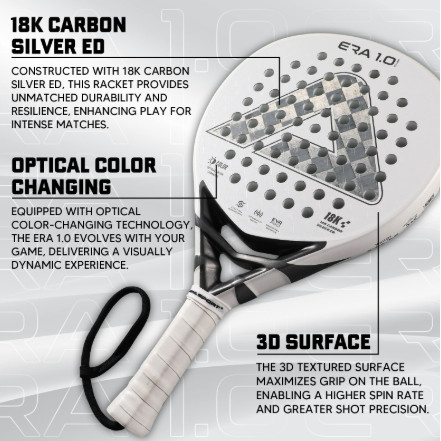 Raket Padel AMASPORT ERA 1 SILVER – 18K Carbon, Smash Power & Kontrol