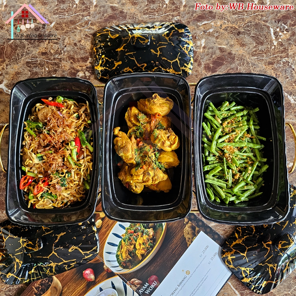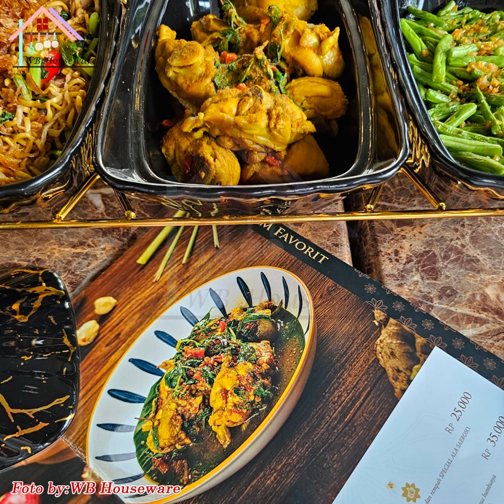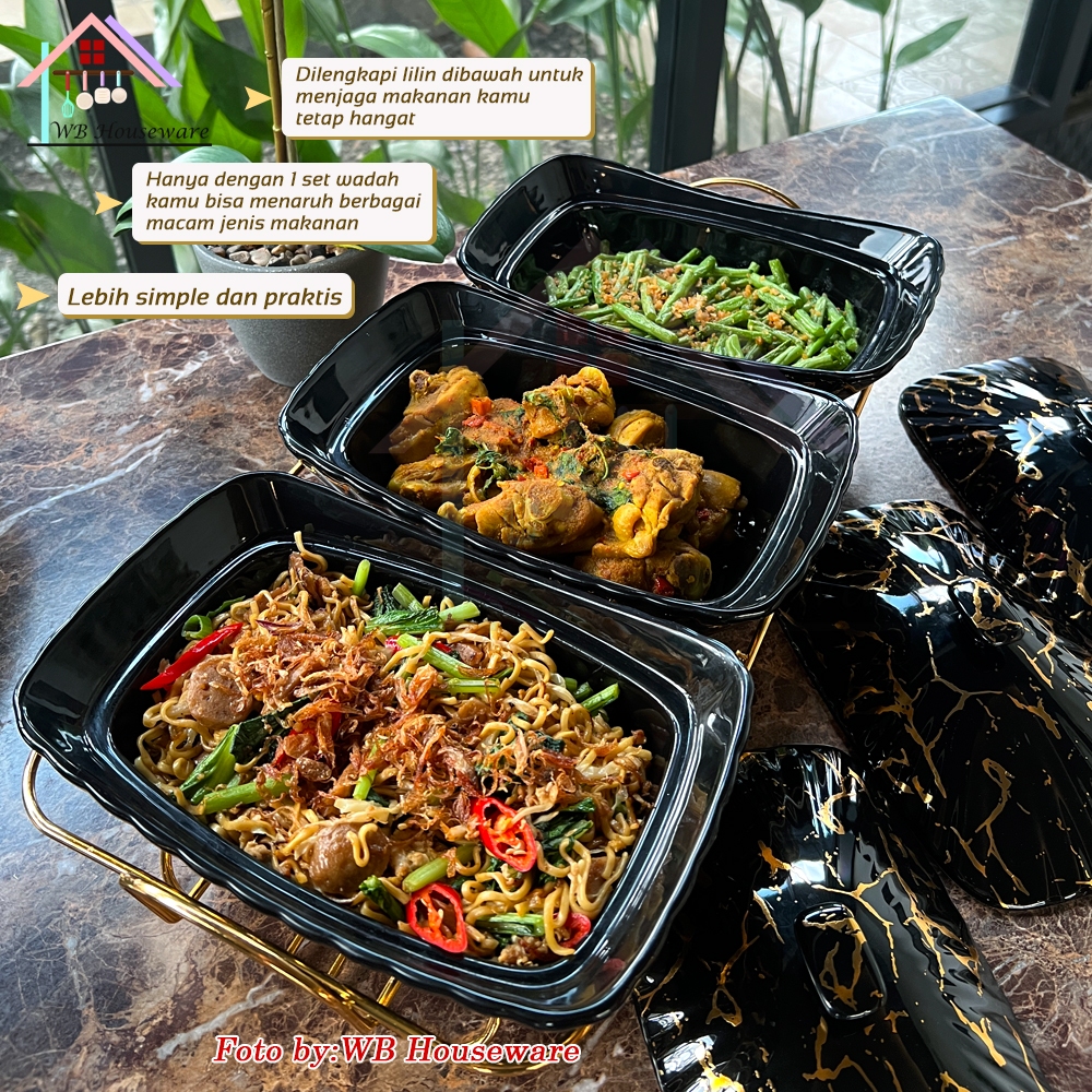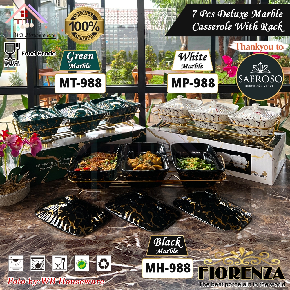 FIORENZA 7pcs prasmanan set segi + tutup + rak motif marble duluxe series keramik / premium casserole set with rack / food warmer type 988