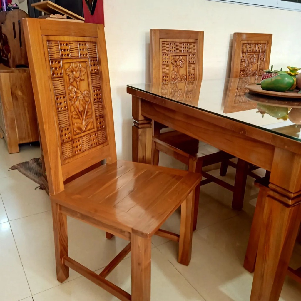 TERMURAH!!! Lengkap Kaca - Set Meja Makan 4 Kursi Kayu Jati Natural Set Meja Makan Murah Set Meja Makan Kekinian