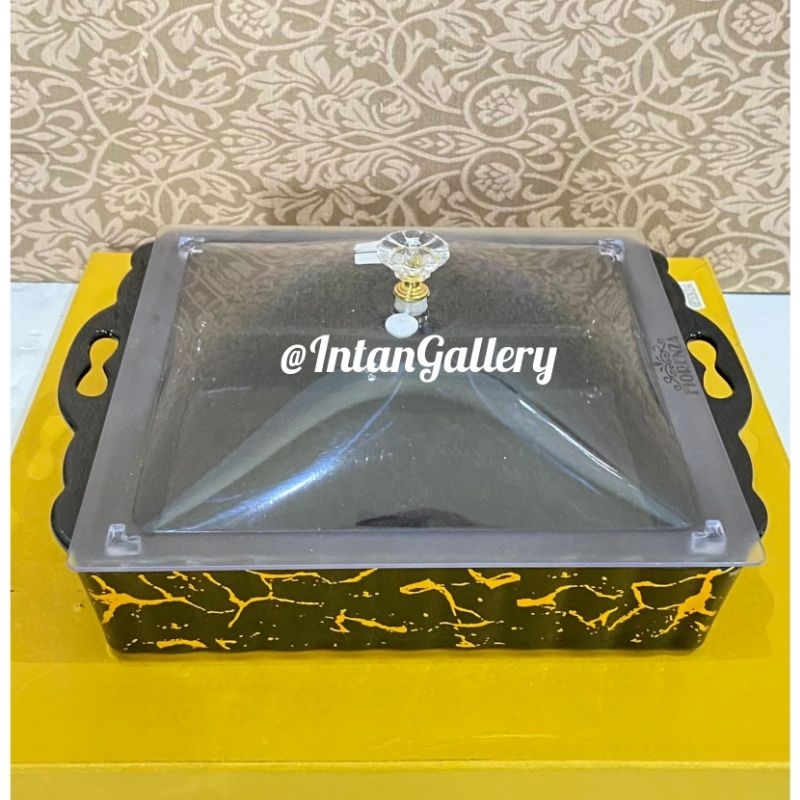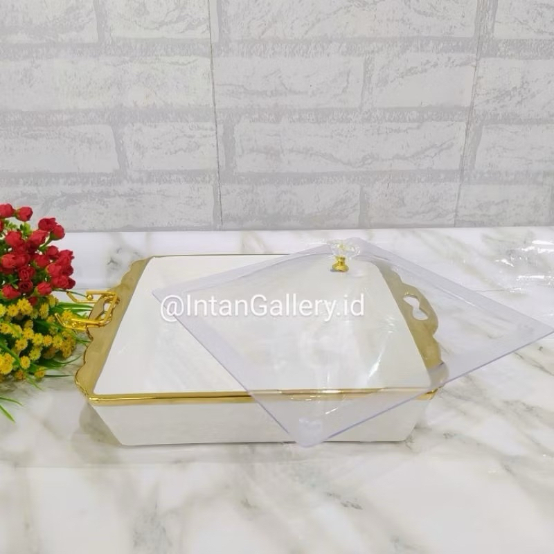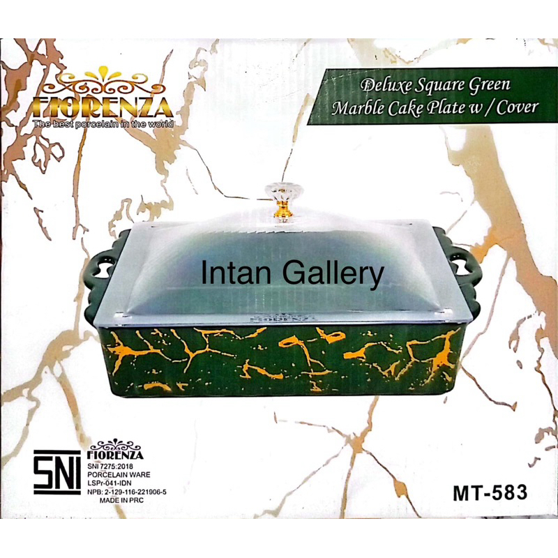Wadah Saji Persegi Keramik dengan Tutup Akrilik Motif Marble Fiorenza - GRATIS EXTRA Bubble Plastik dan Packing Kardus - Peralatan Makan dan Minum dari Bahan Premium dan Higienis Bersertifikat SNI