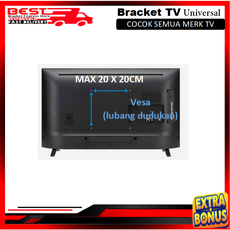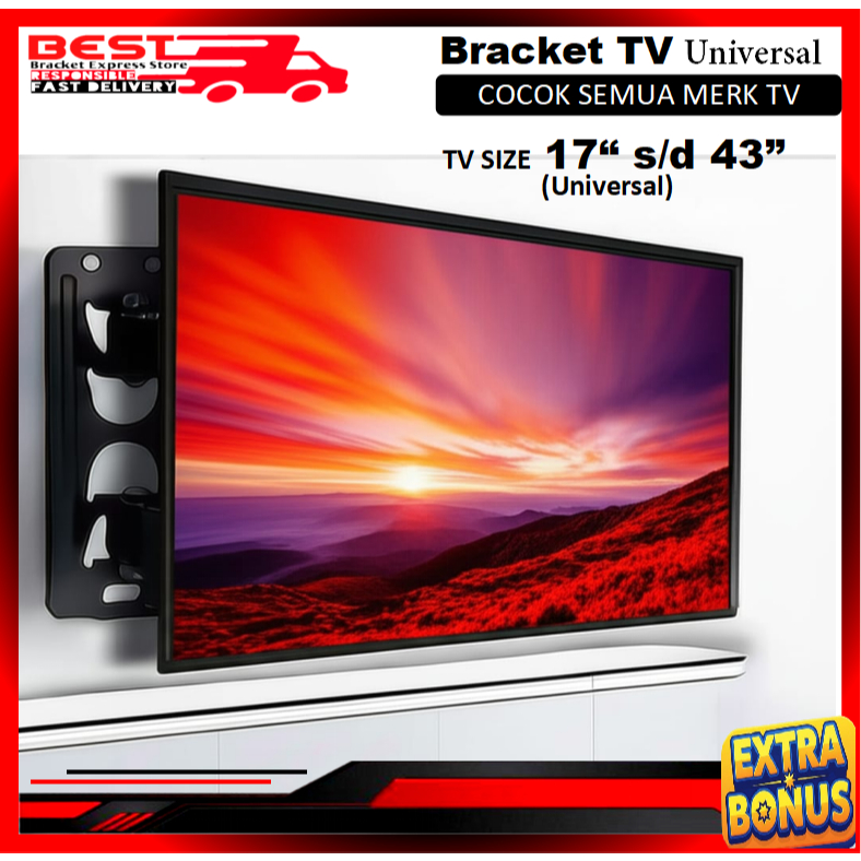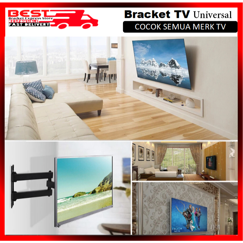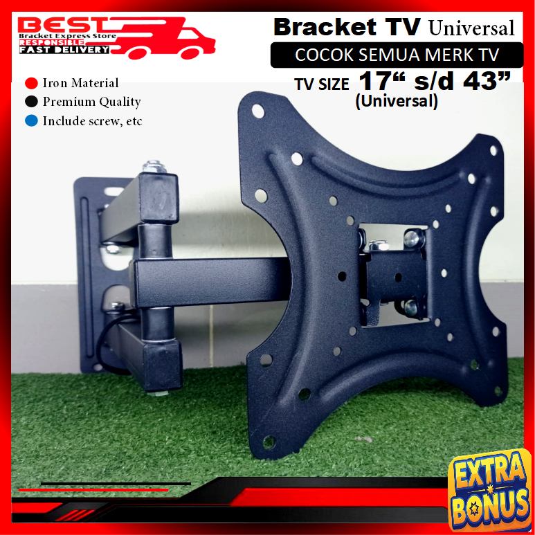 Bracket Tv 17-43 Inch Swivel 6 Arah Universal Tebal Free Kabel Hdmi