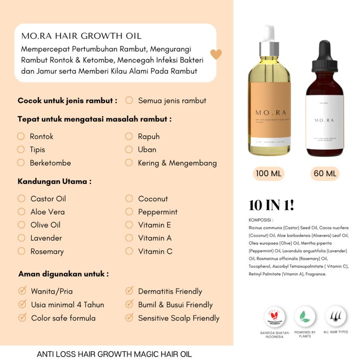 ANTI LOSS HAIR GROWTH MAGIC HAIR OIL / VEGAN HAIR OIL / RAMBUT RONTOK / PENUMBUH RAMBUT / RAMBUT