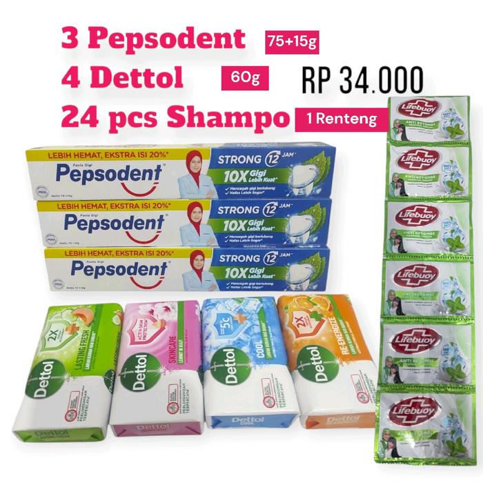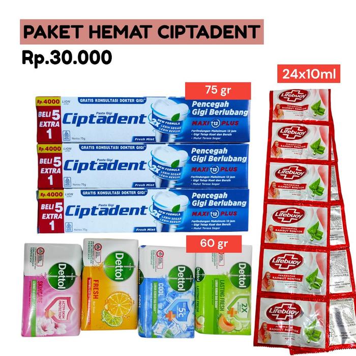 REKOMENDASI PAKET HEMAT PASTA GIGI + DETTOL + 1 RTG SHAMPO MANDI SOAP - HEMAT CIPTADEN ORI