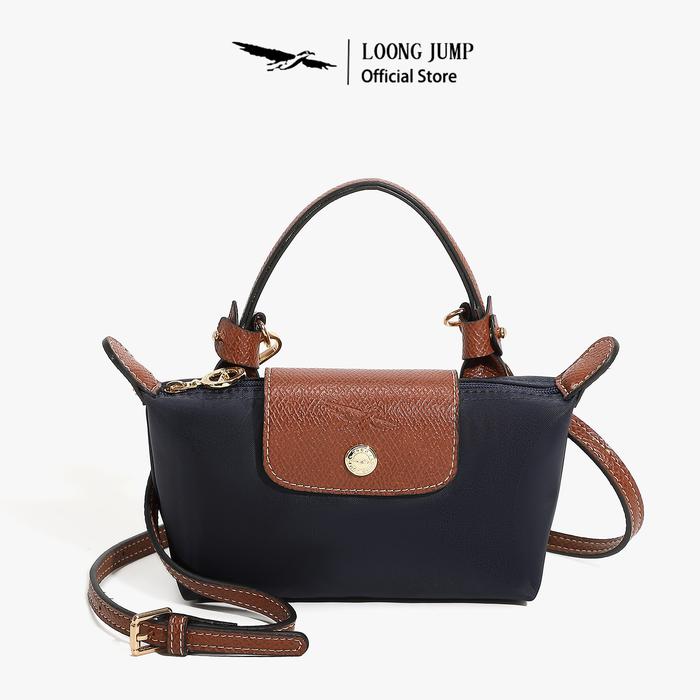LOONG JUMP Mini Bag Nylon Sling Bag Tas Selempang Wanita Tas Tangan Coklat - Hitam