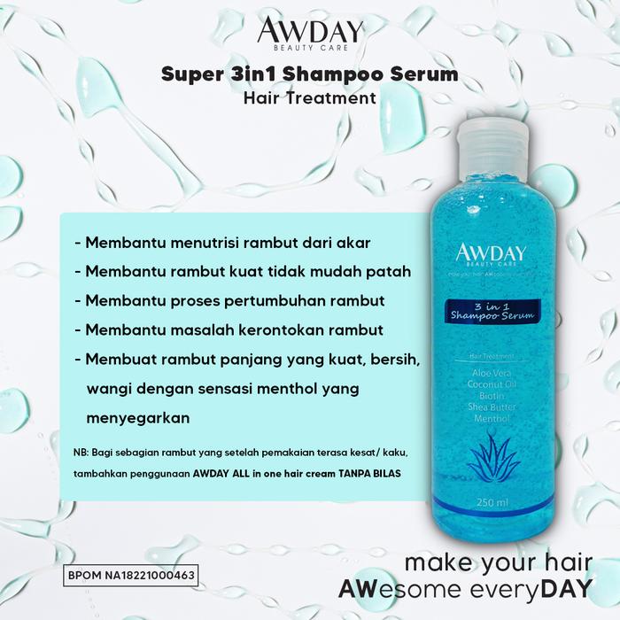 REKOMENDASI SHAMPOO AWDAY SERUM HAIR TREATMENT / SHAMPOO 3 IN 1 ANTI KETOMBE DAN RAMBUT RONTOK - SHAMPOO 250 ML ORI