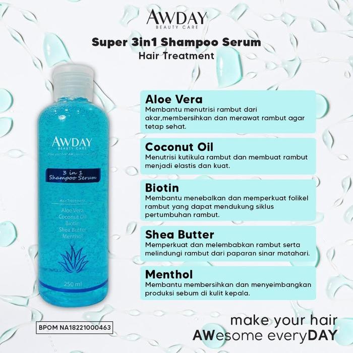 REKOMENDASI [FYC] PAKET HEMAT AWDAY 3IN1 SHAMPOO SERUM 250ML + ALL IN 1 HAIRCREAM TANPA BILAS 100ML - SAMPO+HC ORI