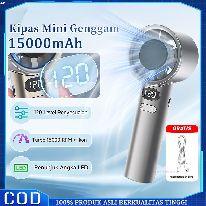 Kipas Angin Portable 15000mah Turbo Mini Tangan Genggam Lcd Display 150 Gear