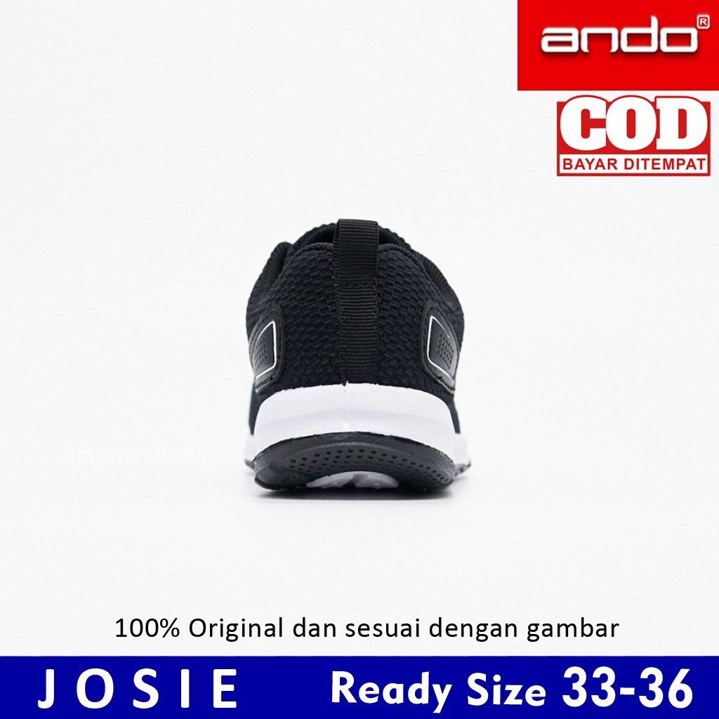 Sepatu Anak Sekolah Perempuan Laki Laki Cowok Cewek Ando Josie Hitam Putih PAUD TK SD Perekat Sneakers