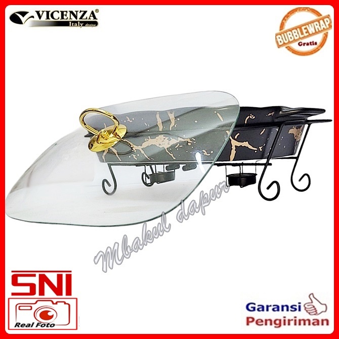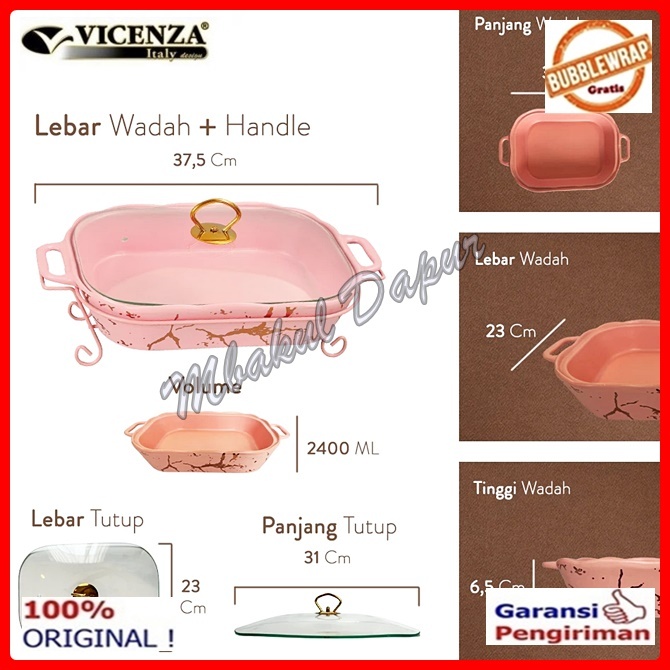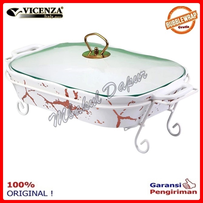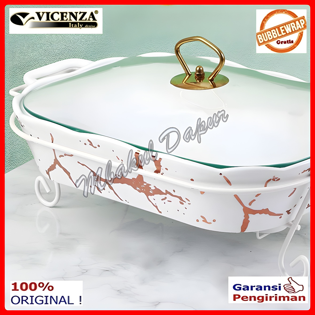 Wadah Saji Prasmanan Keramik Set Plus Penghangat segi / kotak 2 Liter MARBLE Design Vicenza BM 680