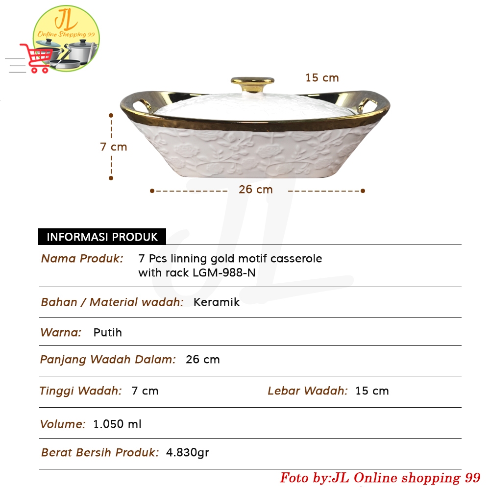 FIORENZA 7pcs prasmanan set segi + tutup + rak motif linning G0.LD series keramik LGM-988N / premium casserole set with rack / food warmer