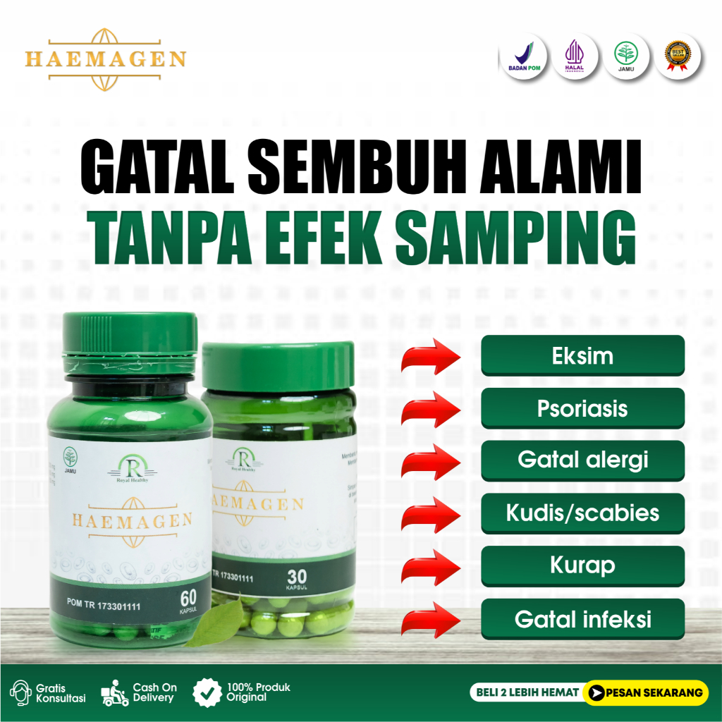 HAEMAGEN PAKET 1 BOTOL 30 Kapsul Membantu Atasi Gatal-gatal Eksim Alergi Dan Ruam Produk BPOM HALAL TERLARIS