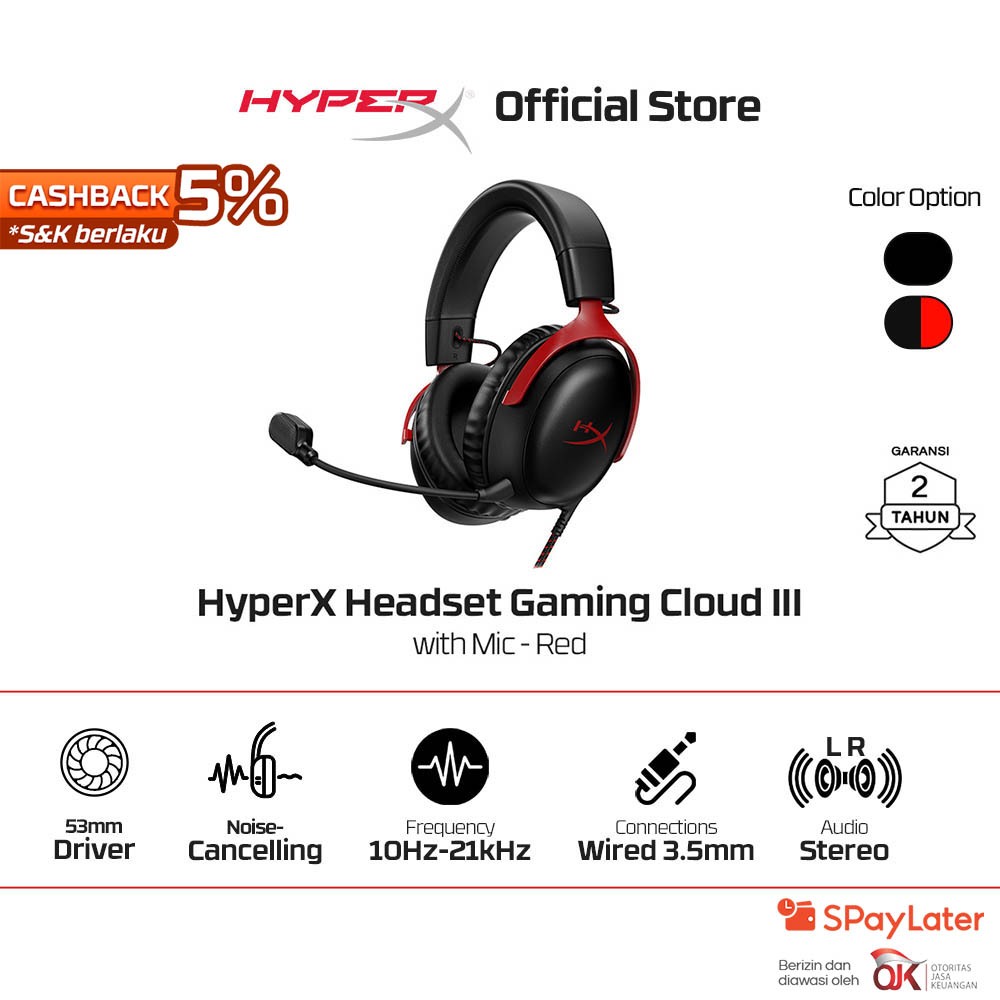 Headset Gaming HyperX Cloud III Wired - Black - Red / Black / White - Pink / White Wired Noise Cancelli