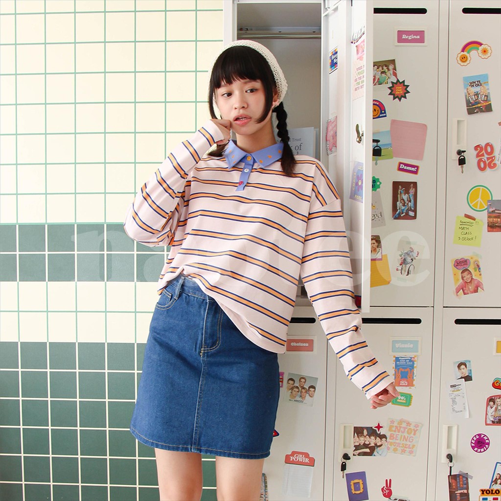 KAOS POLO CROP CROP TOP POLO OVERSIZED PRINT NAOTEE KAOS KAOS SALUR GARIS GARIS WARNA LUCU TREND FASHION BAJU WANITA