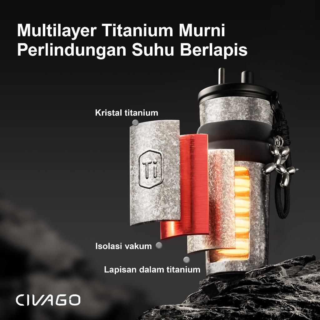 CIVAGO (26oz/768ml) Tumbler Kopi Travel dari Titanium Murni Premium dengan Kotak Hadiah untuk Pria & Wanita, Cangkir Tah