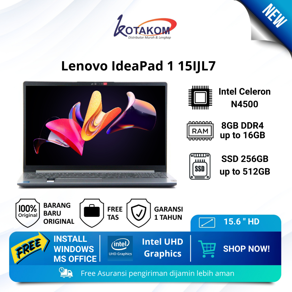 Laptop Pelajar Murah Lenovo Ideapad 1 Intel Celeron N4500 Ram 8Gb Ssd 512Gb Layar 15,6" - New Siap Pakai - 15Ijl7