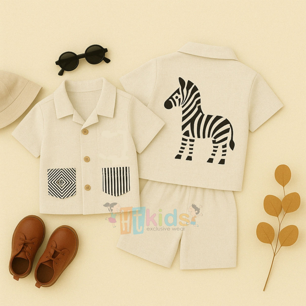 HTKIDS Baju Setelan Safari Anak – Motif Binatang Lucu (Zebra, Singa, Gajah, Buaya) ST14 1 - 6 Tahun