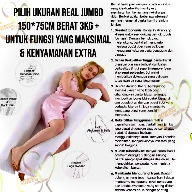 Bantal Ibu Hamil Jumbo Sarung 150X75Cm Tidur Nyaman Anti Pegal Free Tas