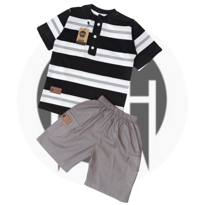 BROADSTRIPE SETELAN KAOS MOTIF SALUR BAHAN COMBED 24S PREMIUM 1-8 TAHUN
