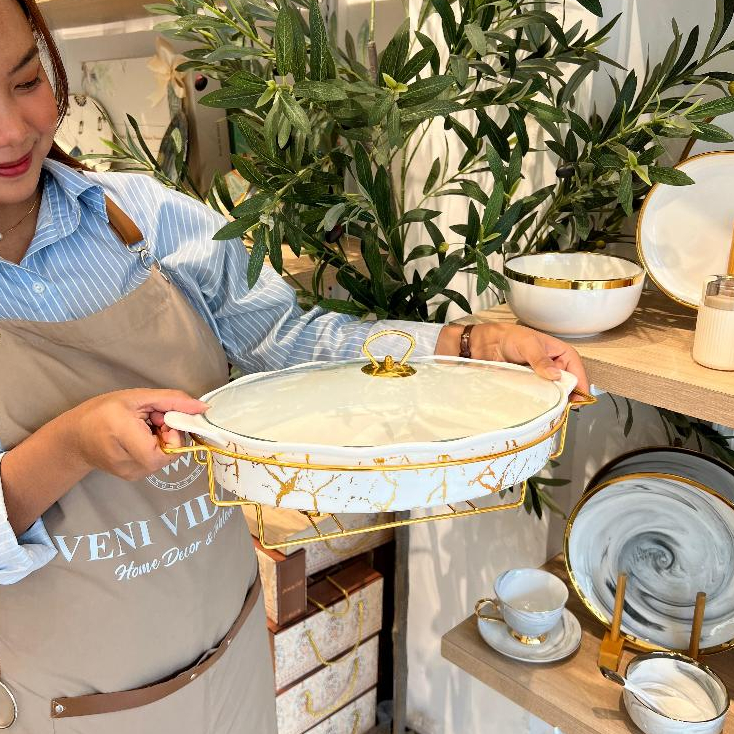 Prasmanan Oval Marble/ Wadah Saji/ Bowl Saji Bentuk Oval