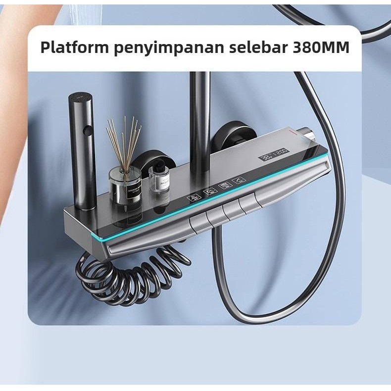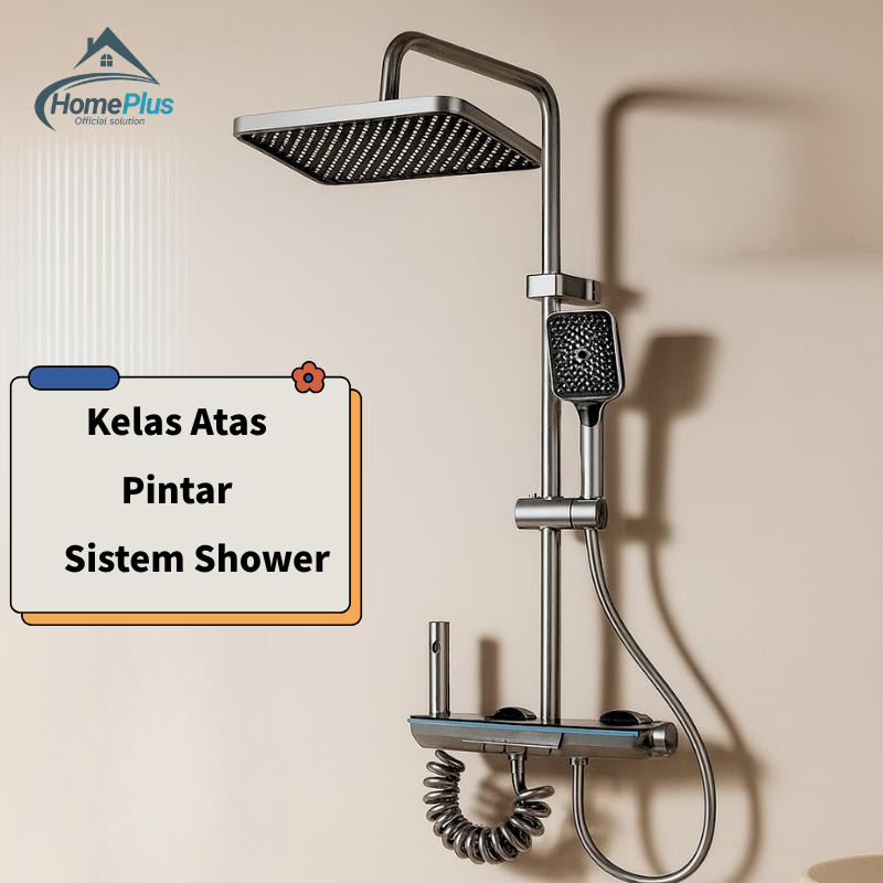 Shower Set ern Abu-Abu Anti Ledak – 4 Mode Tekanan Tinggi + Kran Mixer + Tiang Stainless + Hand & Head Shower