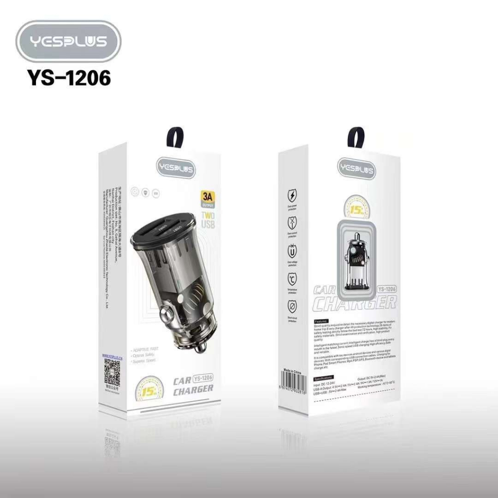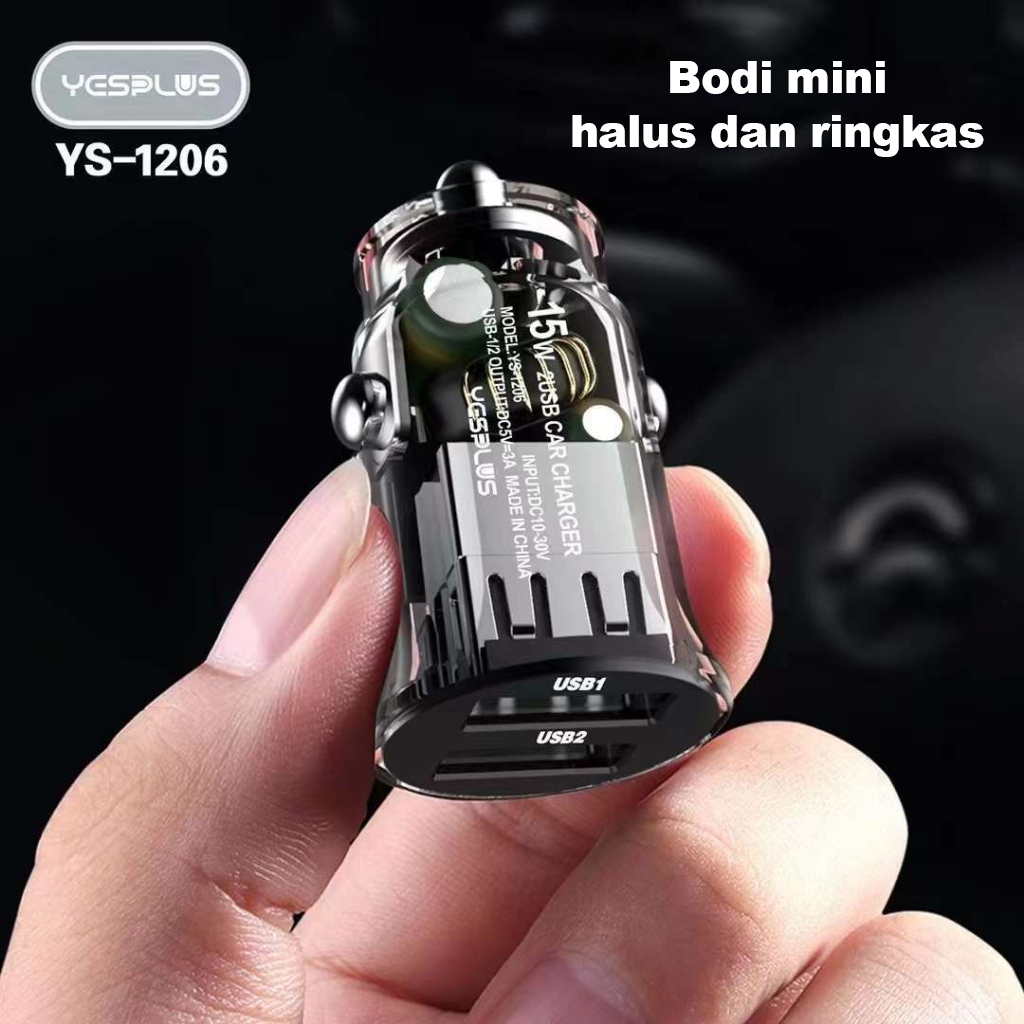Car Charger Yesplus Ys1206 New Saver Transparent Dua Port Usb 3A 15W