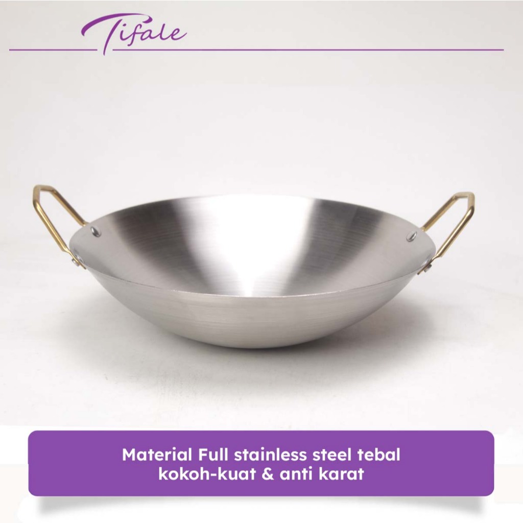 Tifale Wajan Stainless Tebal Kuali Besar Premium dengan Pegangan Stainless Steel Gold Anti Lengket