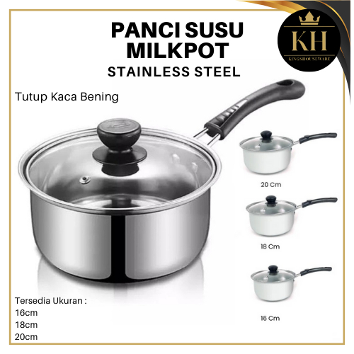 KH - Panci Susu Milk Pot Stainless 16,18,20 CM Tutup Kaca
