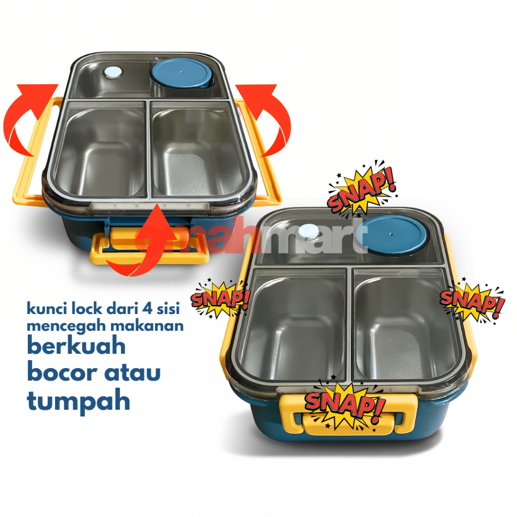 Kotak Makan Dewasa Premium Stainless 304 Anti Bocor Lunch Box 3 Sekat Food Grade + Alat Makan