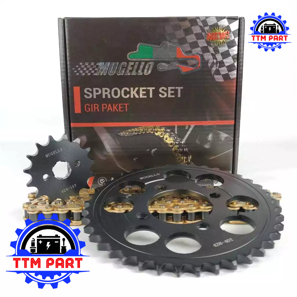 GEAR PAKET BAJA HONDA SUPRA PNP GRAND LEGENDA ASTREA PRIMA SUPRA X 100 LAMA FIT OLD 15/40T 428HG - 104L GIR SET MUGELLO