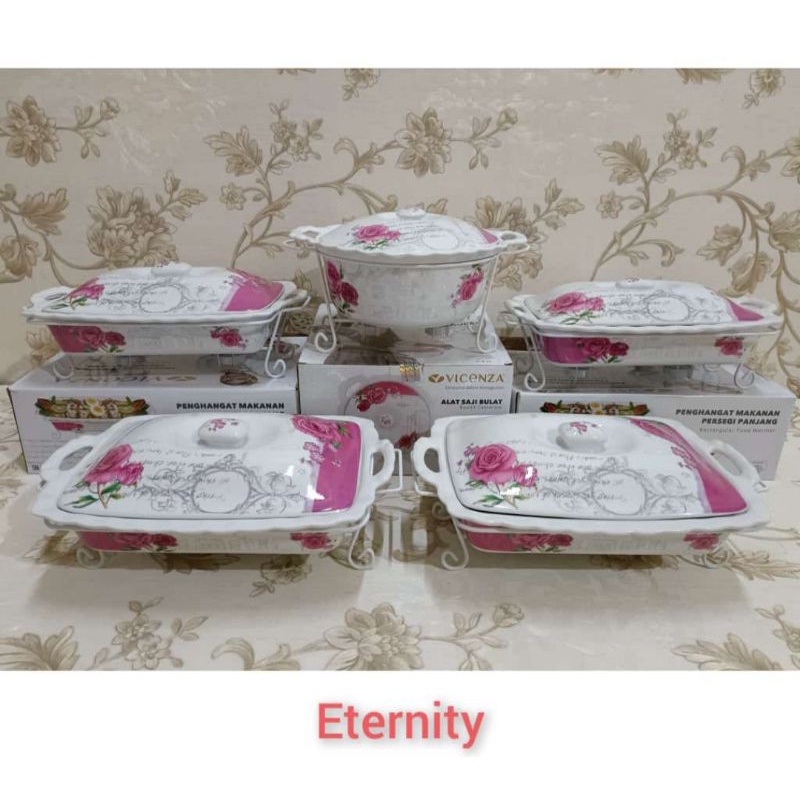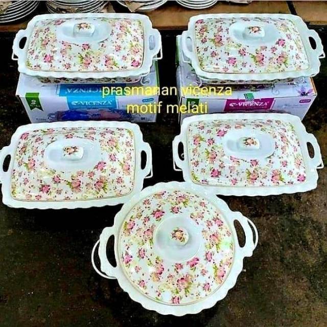 VICENZA Prasmanan Set 4 Segi + 1 Bulat Wadah Saji Makanan Keramik Food Warmer