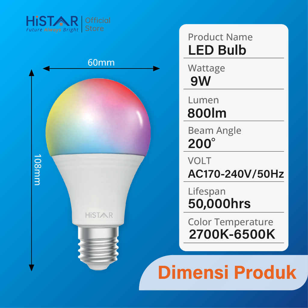 Lampu Smart Led Histar 9 Hingga 12W Rgb Cct Bluetooth Musik Ios Android