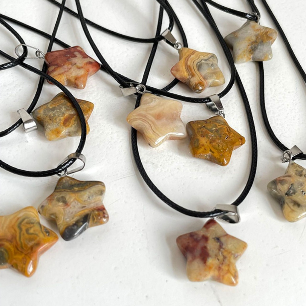 Kalung Berbentuk Bintang Lima Giok Gaya Keren Manis Y2K Batu Rantai Tali Hitam Manik-manik Paduan Glazzed
