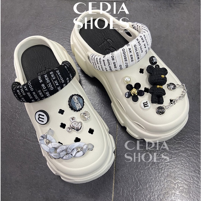 SALE Sandal Slop EVA Baim Wanita Import Bahan Spons Karet Tebal 7 Cm Platform Sol Empuk Elastis Anti Slip Rubber Bapau CLOG Jibbitz Bear 888