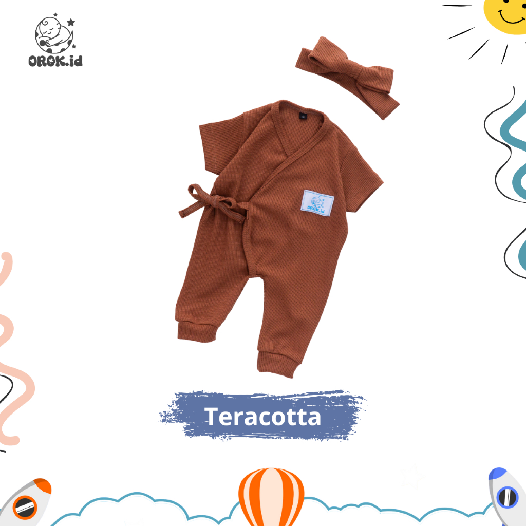 OROK.ID Kimono Basic Free Headband Piyama Jumpsuit Fashion Baju Bayi Pakaian Set Hadiah Lahiran