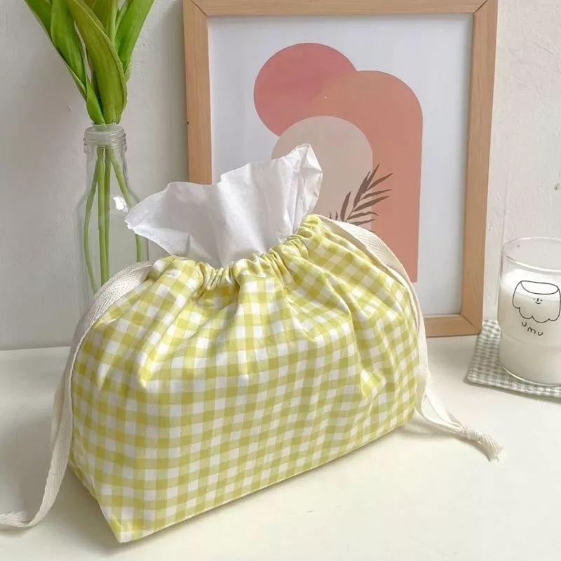 Cover Tissue Gingham Pouch Serut Korea Aesthetic Tempat Tisu Unik Dan Lucu Dekorasi Rumah