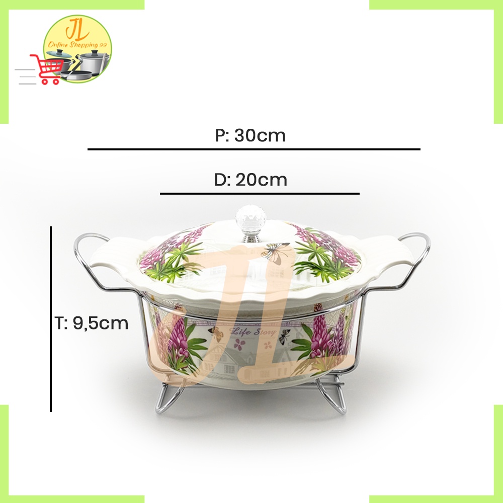 Wadah Saji / Basi Keramik Tebal Prasmanan Motif Bunga FIORENZA LV-912C